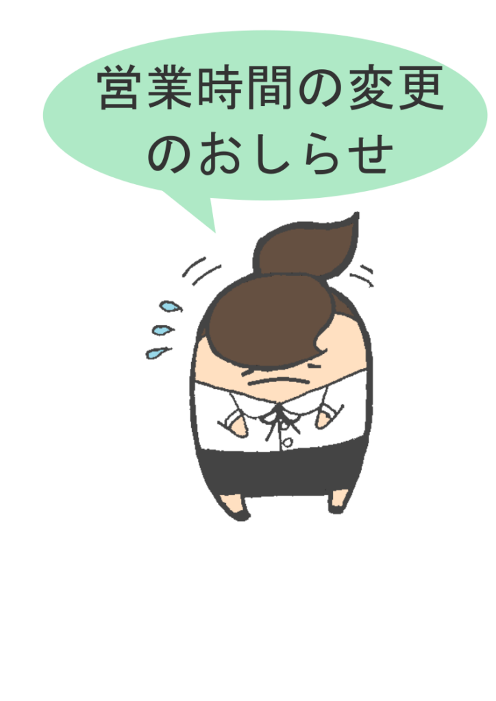 事務所再開の日程は今後変更になる可能性もございますため、ご来所の際には事前にお電話連絡をお願いいたします。